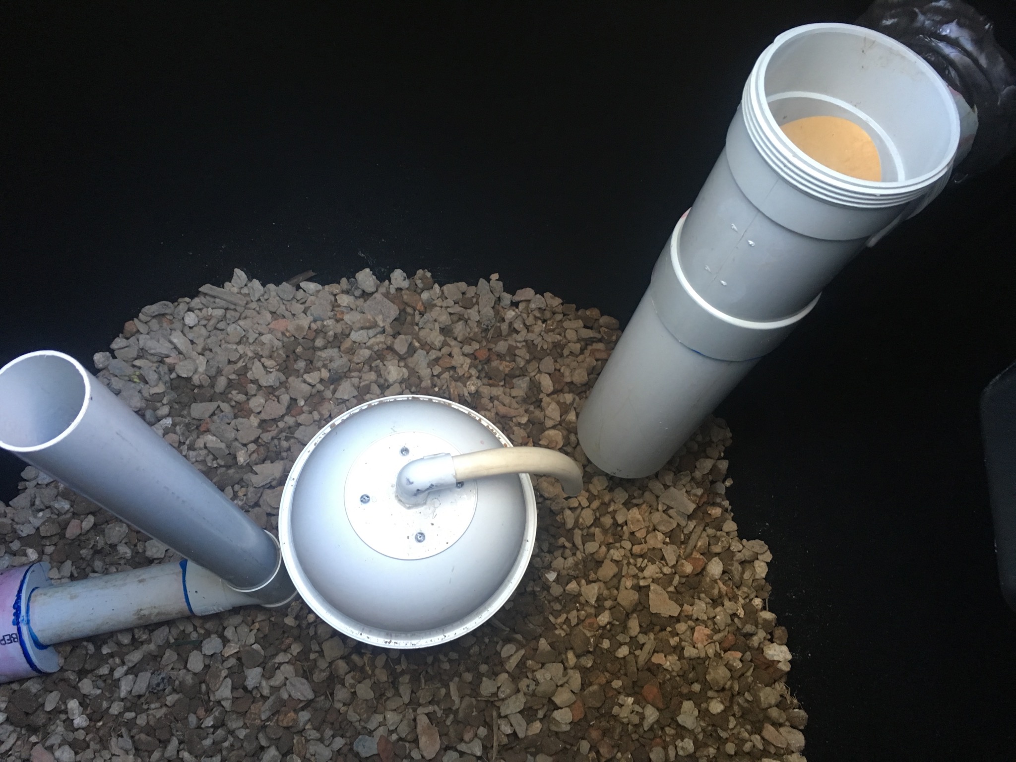 View Inside Bell of Surge-flow Installed in Pumpwell Reln Pumpwell Installed in Pumpwell Installed in Pumpwell Gravel bedding for stabilisation Install Information